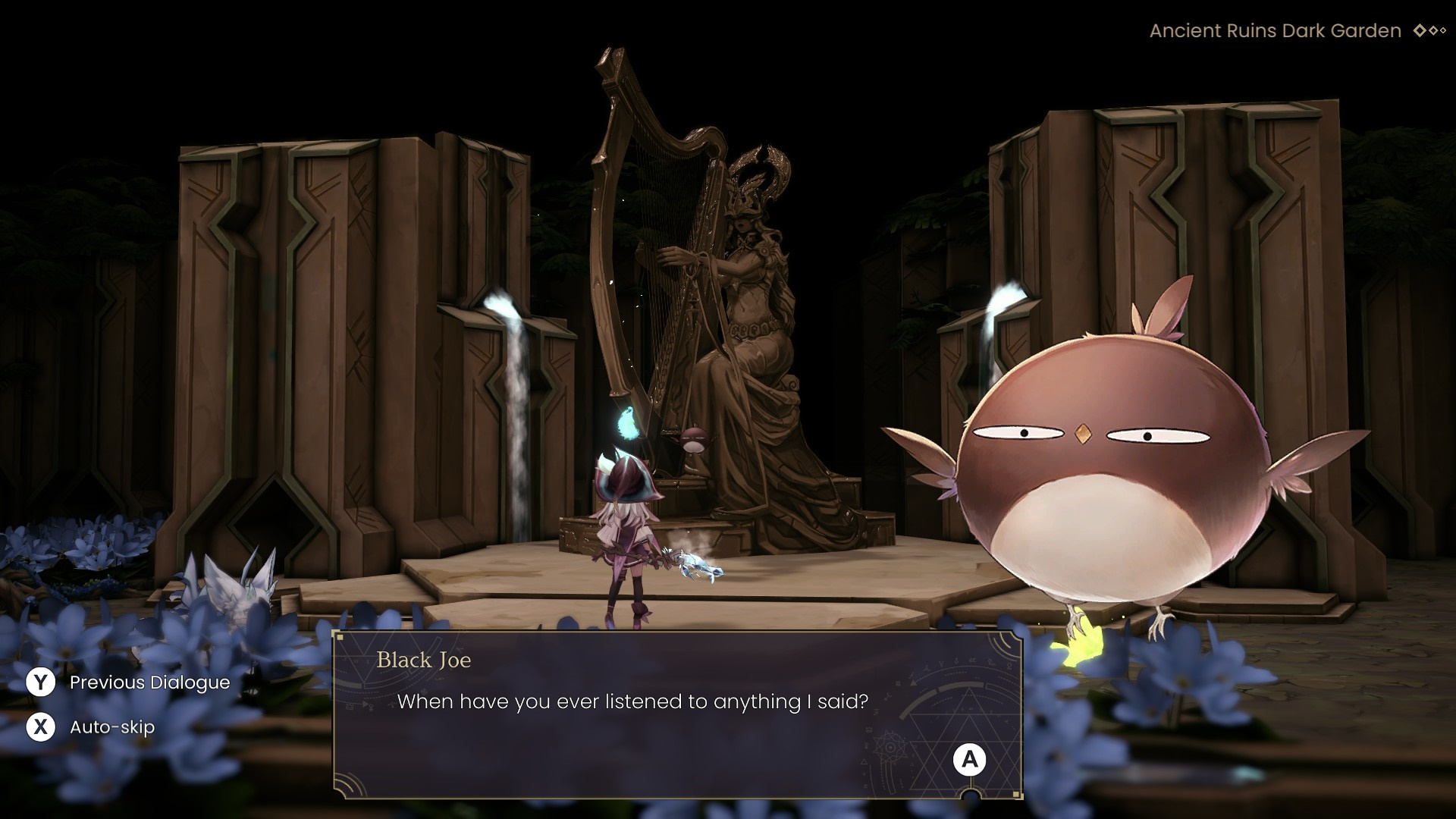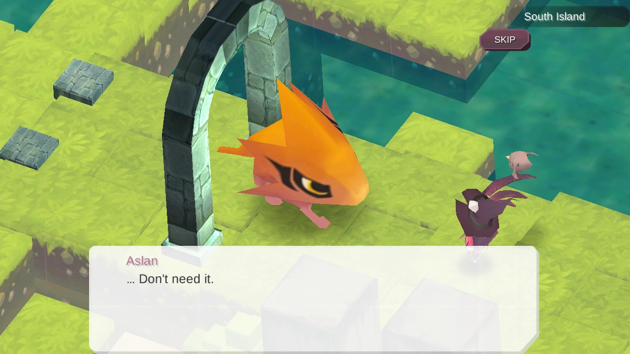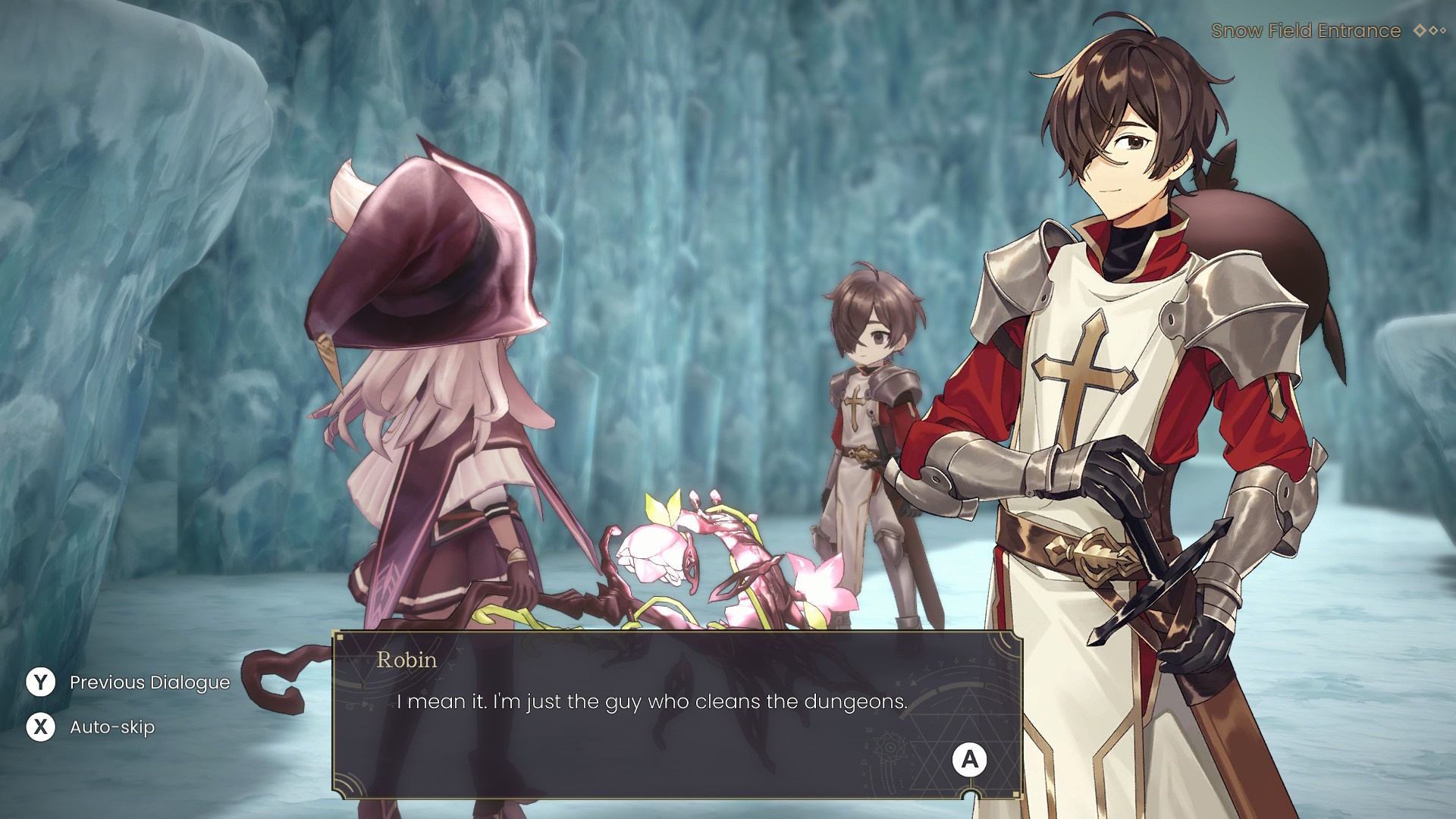 I do have flowers I must give to R's pacing, and they're for its story integration. Pretty much everything the player—and Pieberry—learns has a story explanation. For example, the staff upgrades come about because a soldier breaks her old staff. It's not a flawlessly lain blanket the story hides tutorials with, but when I recall the first act, I remember the cutscenes and conversations associated with the tutorials over the tutorials' floating boxes with a .gif. Highly specialized mechanics do just receive a floating box with a .gif in lieu of a proper story explanation, but given how much time the story devotes to tutorials, it's better we're just given those flashcards before shuffling us along. 3 intertwined  story with tutorials as well, but 3 was also much lighter on features and mechanics, so it could zoom through its tutorials, compared to R, which has a lot more terrain to map.