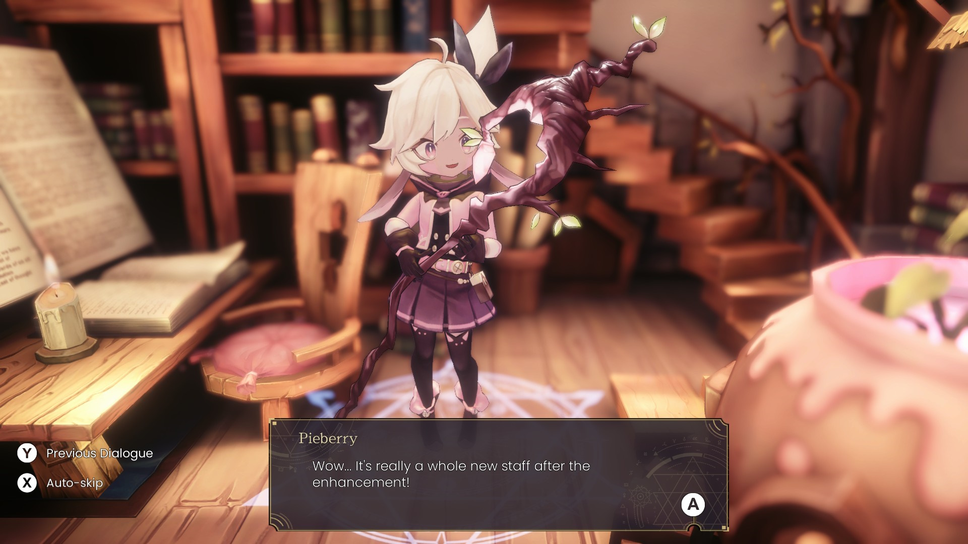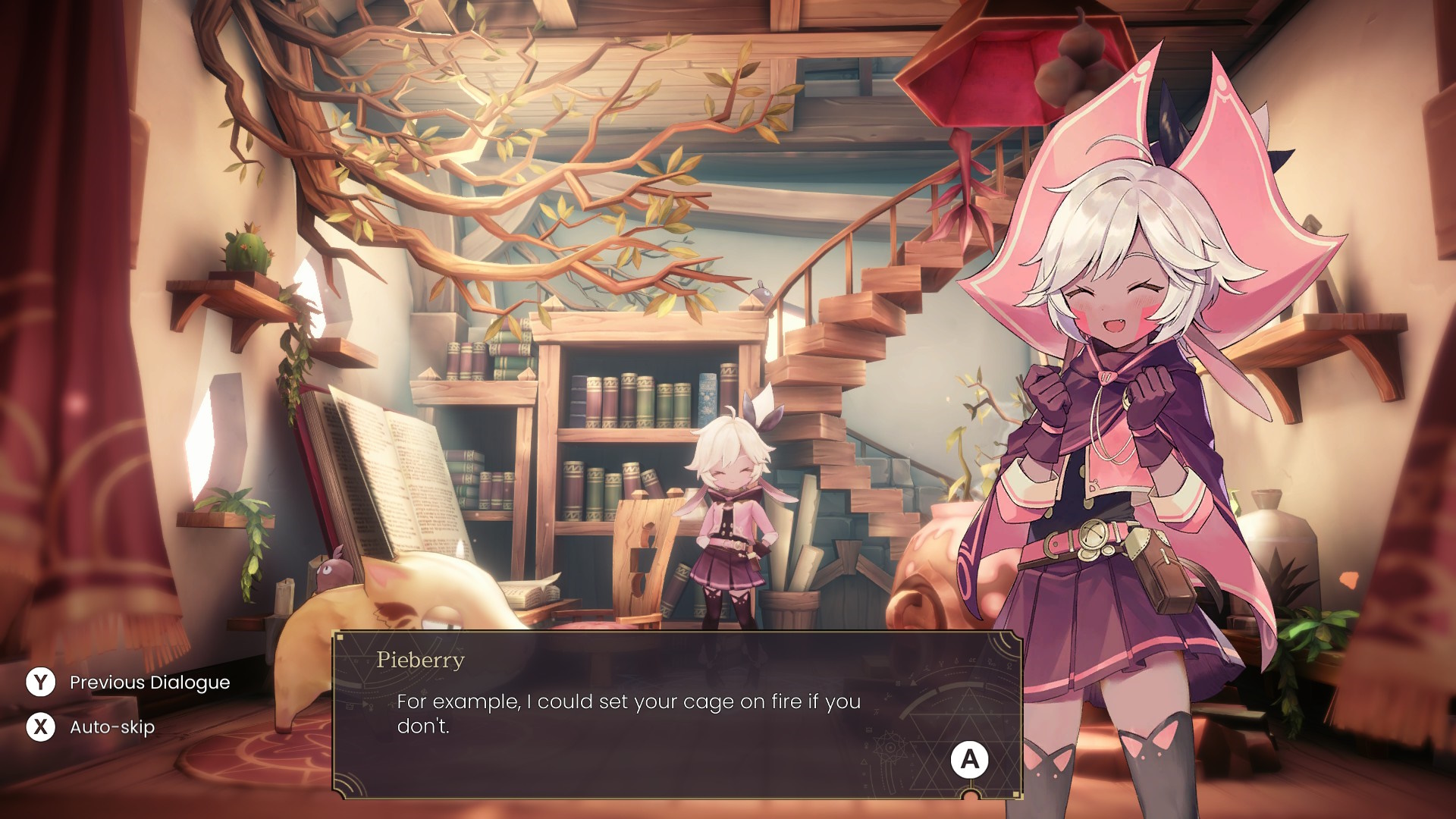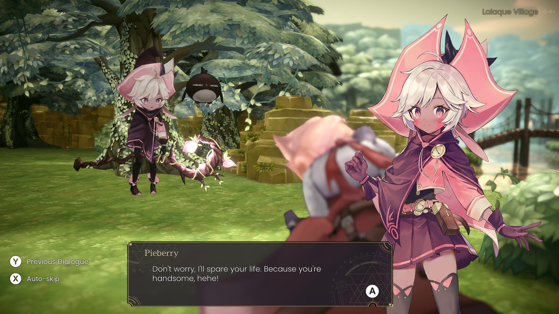 This rings me back round to the design of R's optional content and how it's sometimes detrimental or misleading. Behind Pieberry's house is a fox den with a bunch of sentient fox statues that don't deal much damage but sap her MP, leaving physical attacks as the only manner of defeating them, making defeating the pack at this stage infeasible due to her pathetic Strength. So I opted to return at a later date, but there was never a measurement for when was a good chance to return. Maybe there was when I got a sword, but since I was dumping all my level-ups into Magic, I wasn't relying on any physical weapons. By the time I did return to the fox den, I could defeat the foxes in a snap, and the pet I captured here was replaced almost immediately by something else that did the same thing, just better. WitchSpring R isn't the first JRPG that has this same issue, and it won't be the last, I'm certain. Xenoblade Chronicles 3 is rife with it because there's so much extra content, it's borderline impossible to cover all of it without winding up overleveled for some. But when it comes to R, it has a series solution that nudges the player in the right direction but waters it down for no discernible benefit. Had I received that nudge, I could've made it back to the fox den sooner.