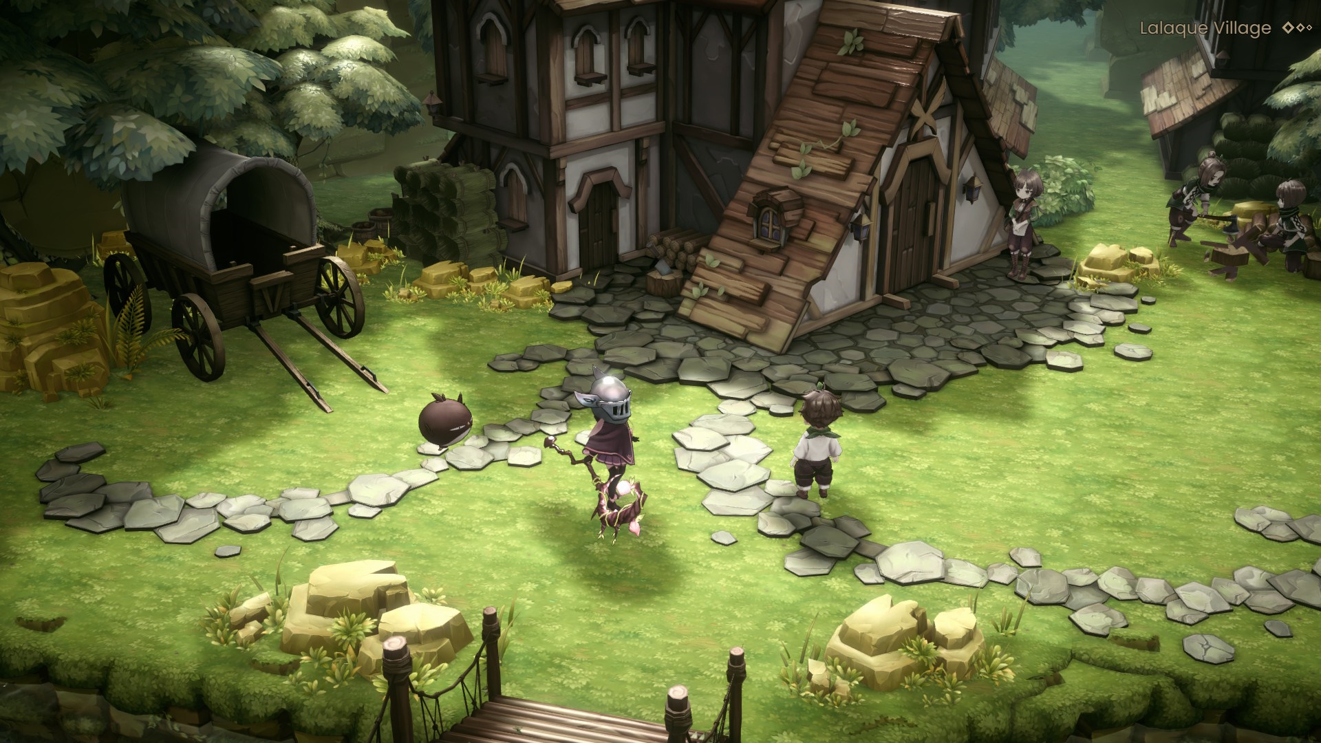 Great designs are everywhere, from the characters you meet, to the baddies you fight, to the weapons you wield, to even the clothes Pieberry wears. Pretty much every time a new character debuted, I captured a screenshot because I liked their attire so much, and every time I came across new architecture, there I was, snapping pics like some obnoxious tourist. The list of designs I love is long and detailed, filled with items like the gable roofs that serve as doorways in the first village, a witch whose house's rooftop is fitted with a giant moon, and Pieberry's cat-themed socks.