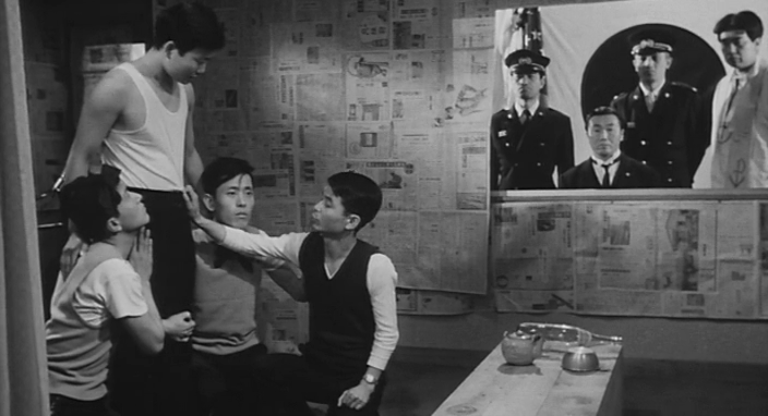 For all of this, Death by Hanging is not a perfect film and much of the messaging is set out within the opening 50-minutes as those responsible for the hanging all try and recreate R’s crimes to make him remember then morphs into something else. We suddenly move into R’s home, the walls of the hanging space are plastered with newspapers; we see his life acted out before him (some prison staff acting as his sisters even have bows in their hair) and the prison staff's racism becomes apparent as they complain how their compatriots are not behaving as they would expect of a stereotypical Korean. (Arguably, it’s the equivalent of 1930s black characters in Hollywood.) This occurs against the backdrop of the Education Chief trying to explain to R why he is different - why a Korean born in Japan is different to a Japanese person born in Japan. He fails. Everyone that intervenes fails. There is a theme of nations being meaningless, often except to try and exclude and not include (something I wholeheartedly agree with).