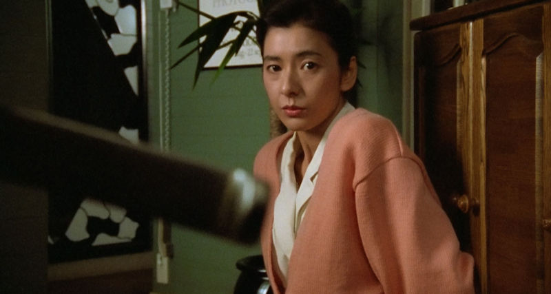 At first Yamakawa as the apparently vindictive salesman makes sense: he’s an 80s go-getter and Yasuko has injured his hand. He cannot work (or so he says) but moreover the sense of roiling frustration in him suddenly going from simmer to mental breakdown that focusses on Yasuko makes his continuous phone calls to her, up to the moment when he repeatedly kicks her metal front door, so very meaningful. Yet as he moves to more overt threats, including against her young son, I found my suspension of disbelief straining and struggling, because there comes a point where Yasuko has proof of who he is and the threats that he has made that logically should be presented to the police (and at this point in the film she has seen the police who are sympathetic), so at about the hour mark of the 95-minute film I found my eyes-rolling because though Takahashi is able to keep the film interesting visually, the story seems underbaked, not quickly enough told for us to forgive some plot holes or well-thought-out enough to make sense.