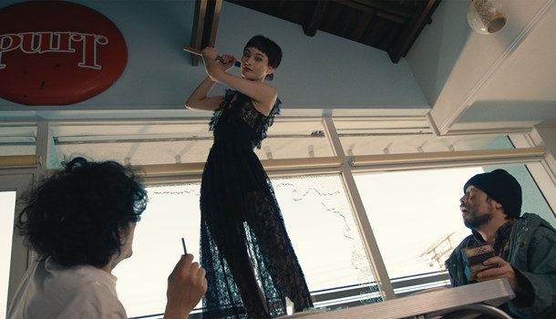 Mad Cats often marries aspects of slapstick and hints of absurdism with more straightforward action and visual gags, though "action comedy" is likely the tag most will give it. Often the humour is not entirely my style, I don’t like slapstick and here we have a slapstick protagonist who has little character growth, and what there is is pretty token (Takezo does though). But the absurdist pieces and the way the film's own branding is pulled out into the film world is definitely more my thing and where I most enjoyed the film. I felt, too, that it was well shot and lit, and often looks very stylish. On one level, put people in leather and many people will argue it will look stylish, thinking back to The Matrix, but it’s beyond that, as Mad Cats has it's own look and feel that is pretty unified throughout; it helps that the soundtrack really suits the film, and definitely gives it some momentum and energy when needed.