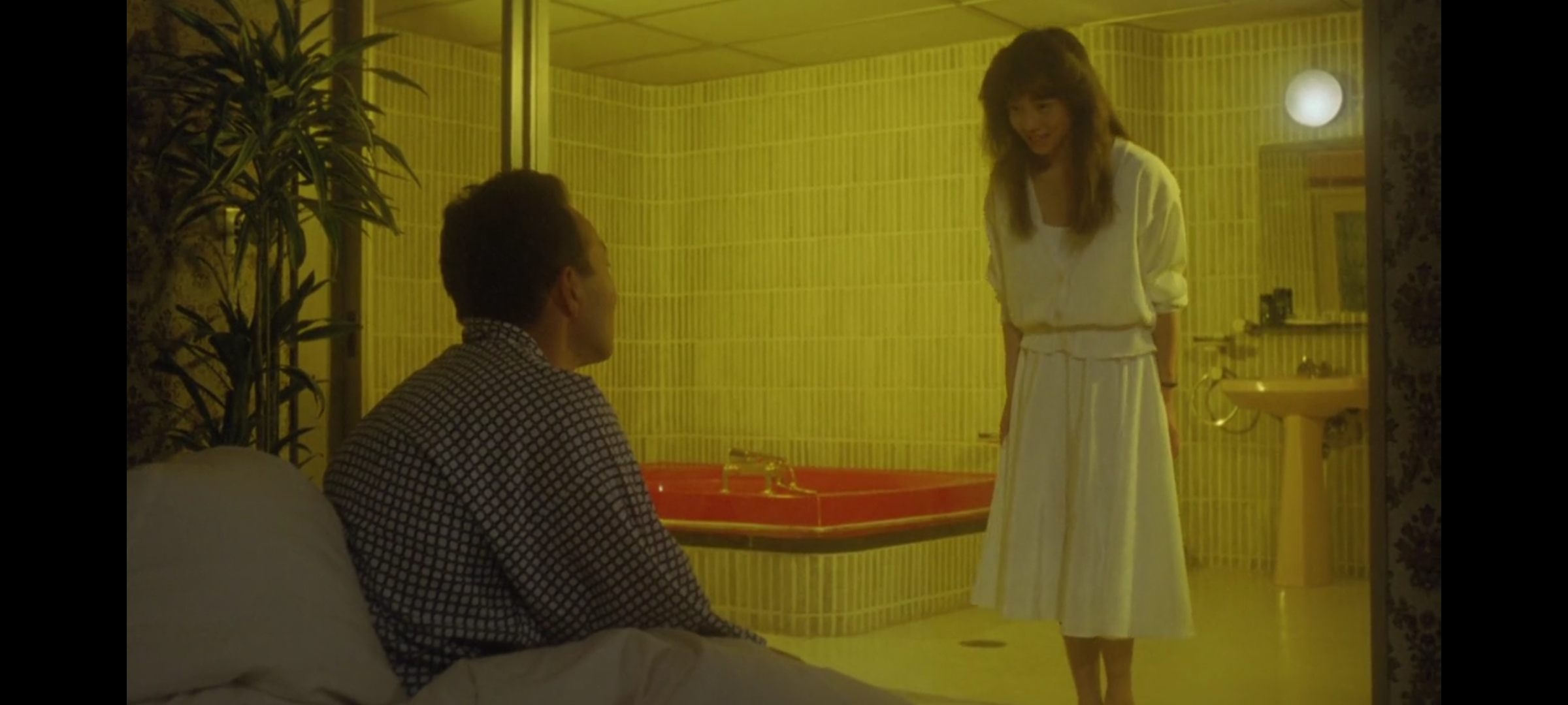 Considering this is his first film as director, Ishii’s work is very assured – his use of sets and visuals within them (who doesn’t love some neon?) seems natural to him and he demonstrates some mastery of the camera. He seems very much at home directing the image and developing his characters. Equally his actors seem comfortable with him, especially I felt Naoto Takenaka as Muraki (who some might recall from A Night in Nude), who has a real skill for playing men who are often on the skids. He has a stillness to him that says more than a trolley full of emoting. His extremes of emotion feel grounded in reality: the complexity of his emotions, especially those where he seems to be trying to explain away his worse actions could feel false, but Takenaka makes you understand who this character is, allows you to see the layers that are there, the frustration, the anger, his sense of smallness and how he knows he’s fucked up but cannot admit to his own stupidity and also why he is so very, very desperate. This element of thoroughly exploring its character's motivations is a strength of the Angel Guts films and really comes to the fore with Muraki. A little less so perhaps with Nami, though her strength of character and ability to fight instead of playing the victim should be lauded, as it could have been played very differently, as is often the case in this specific genre.