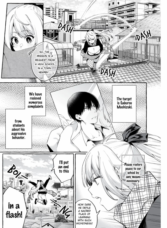 A kunoichi, the term for a female ninja, named Otoha has finished her training under an elder and has been given her first mission. A problematic high-school student called Saburou Mochizuki has been causing problems by acting aggressively towards his fellow students and Otoha has to deal with him “by any means necessary”.